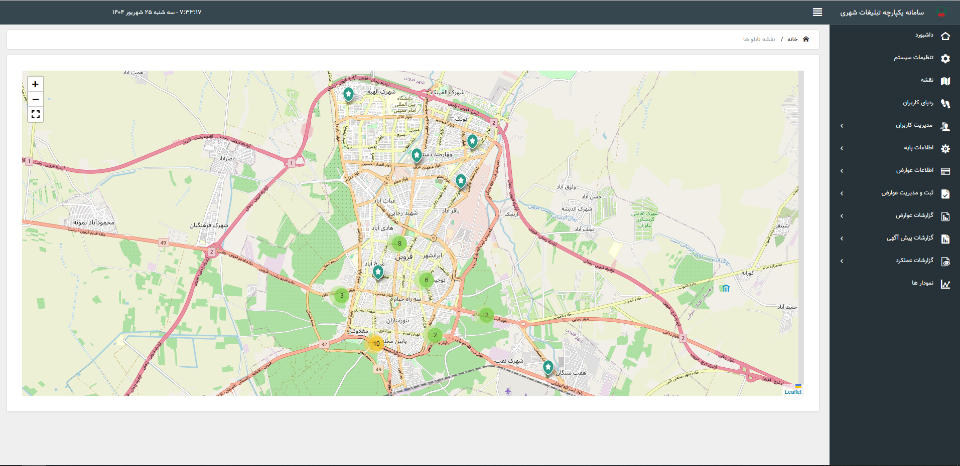 همزمان، مدیران شهری میتوانند از طریق پنل مدیریتی، اطلاعات را روی نقشه GIS مشاهده کرده و موقعیت دقیق هر تابلو، وضعیت پروندهها و تراکم تبلیغات در سطح شهر را بررسی کنند.